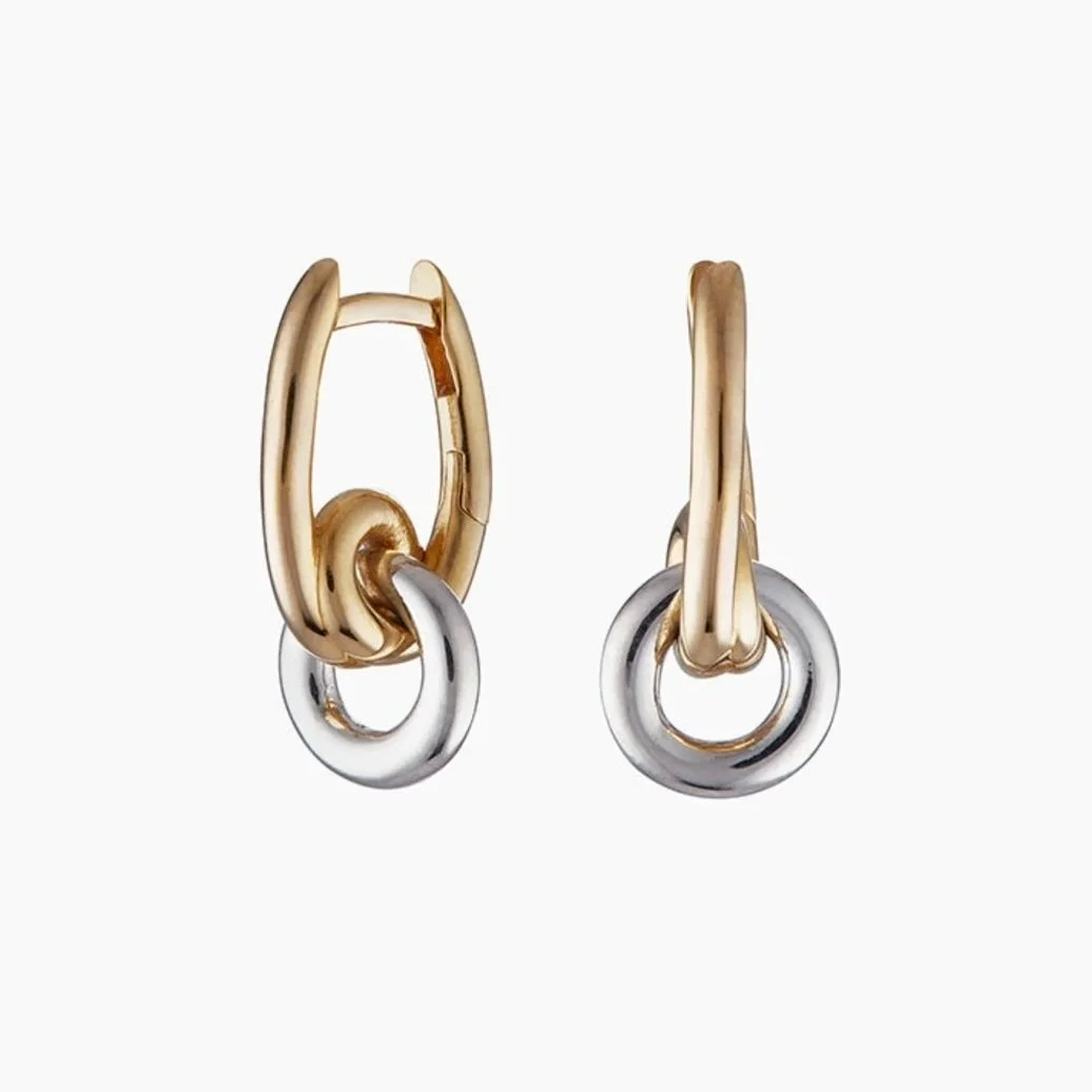 Modern and versatile, the Loop Drop Earrings bring together warm gold vermeil and cool recycled sterling silver in a striking mixed-metal design. Handcrafted for balance and proportion, they offer an impactful statement while remaining effortlessly wearable.